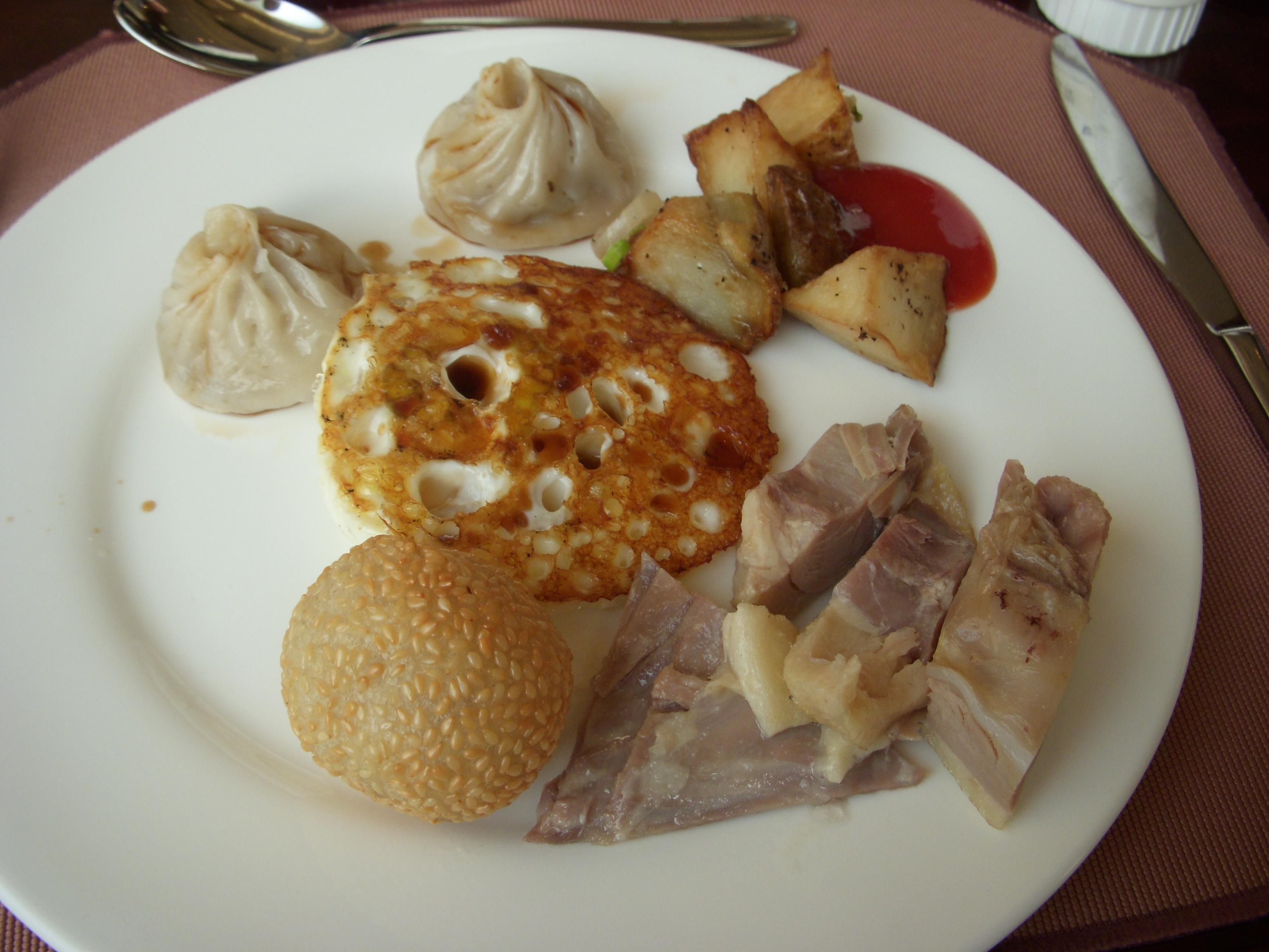 We started off our last day in Xi’an with a dessert-heavy breakfast at the hotel. Although the Shangri La Golden Flower was one of nicest hotels we stayed in, the breakfast buffet was only so-so, but we made do with what was available.