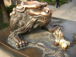 After leaving the Temple Bazaar, we made the short drive over to the Bund, which is a riverfront area that faces the Shanghai skyline. The buildings along the Bund are European style, relics from western settlement in Shanghai. Across the river are the skyscrapers that are rising at an astonishing pace, representing the “new” Shanghai. It’s a really beautiful area, and I wished that we had more than 20 minutes to spend there.