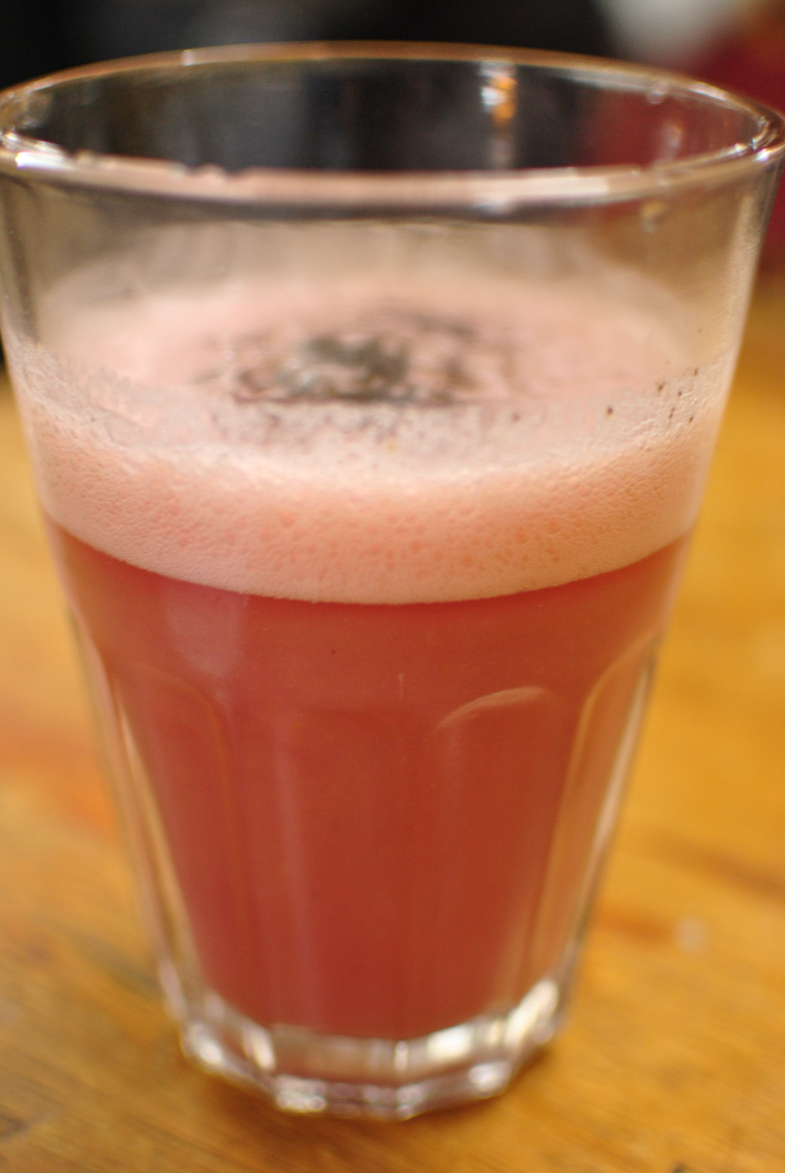 It was a super casual place, with long communal tables and stools. Nobody spoke english but we were able to get by. When we ordered a glass of chicha, however, they told us they had run out. Darn! We were extremely disappointed and ordered a glass of frutillada instead, which is basically a non-alcoholic chicha with the addition of strawberries. It’s a nice pale pink color, frothy on top, and looks sort of like a strawberry smoothie. The taste, however, was very different. It had a sour, fermented, yeasty flavor, with just a slight sweetness from the strawberries. There was also some sort of seasoning on top that I couldn’t identify, as it had an unusual taste. I wouldn’t say that I enjoyed the flavor of the frutillada, but it was certainly interesting to try.