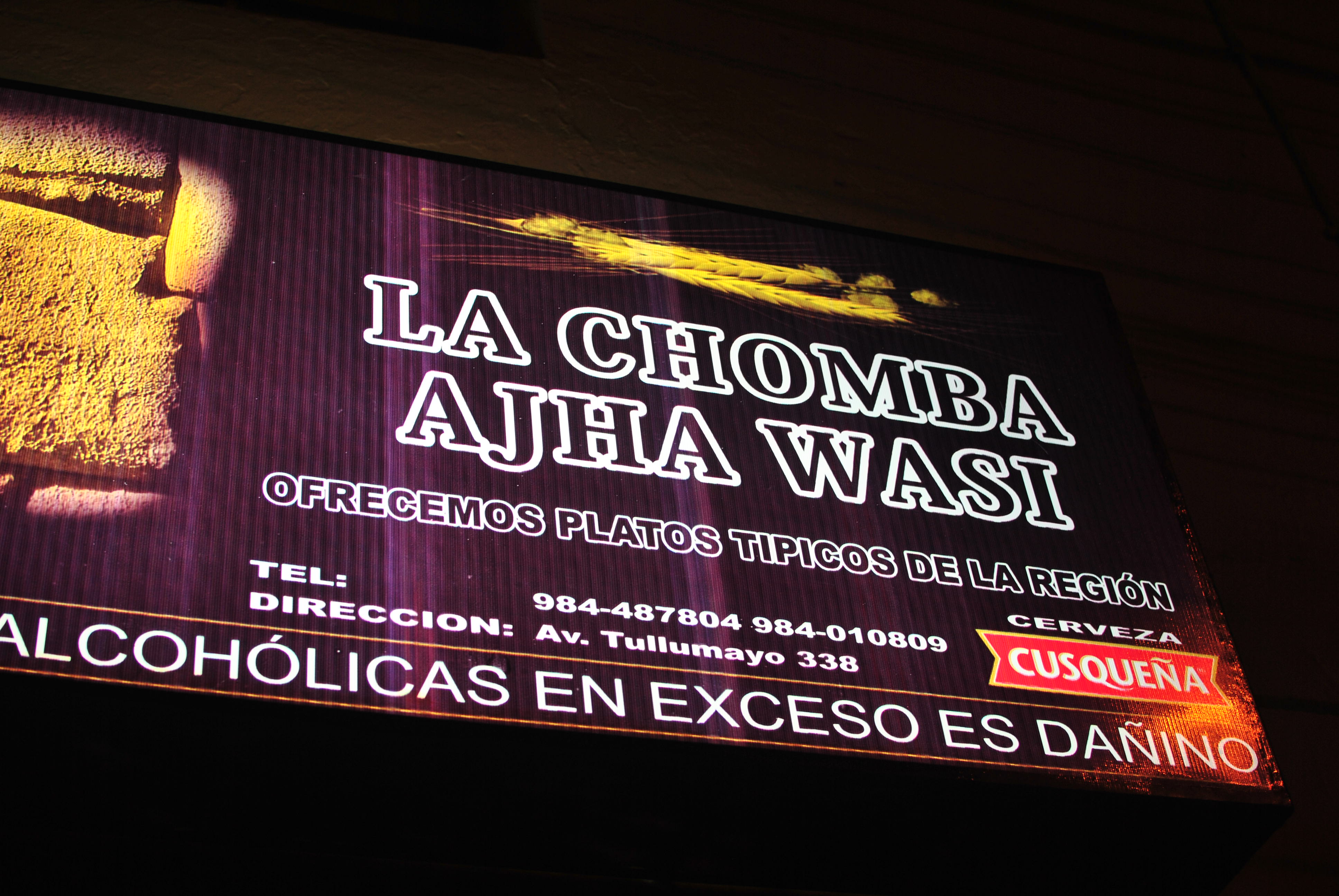 Our total bill was ridiculously low – just 20 soles (US$7.40). I would definitely recommend checking out La Chomba Ajha Wasi if you’re looking for some local flavor in Cusco. It’s a no frills place but service was friendly and we were able to try chicha. It would be a good place to sit down for a bit, grab a snack, and drink some cold Cusqueno beers. Many thanks to our guide for the great recommendation!
