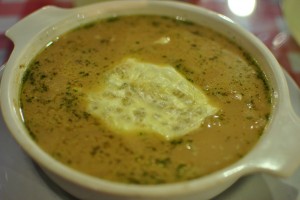 Josh and I decided to split an onion soup to start, and a half chicken platter for our entree. The onion soup was lighter than a regular french onion soup, but it was still topped with a nice stringy cheese. It had good flavor and I liked that it wasn’t too rich or heavy. The onions were soft and sweet, and we polished off the bowl quickly.