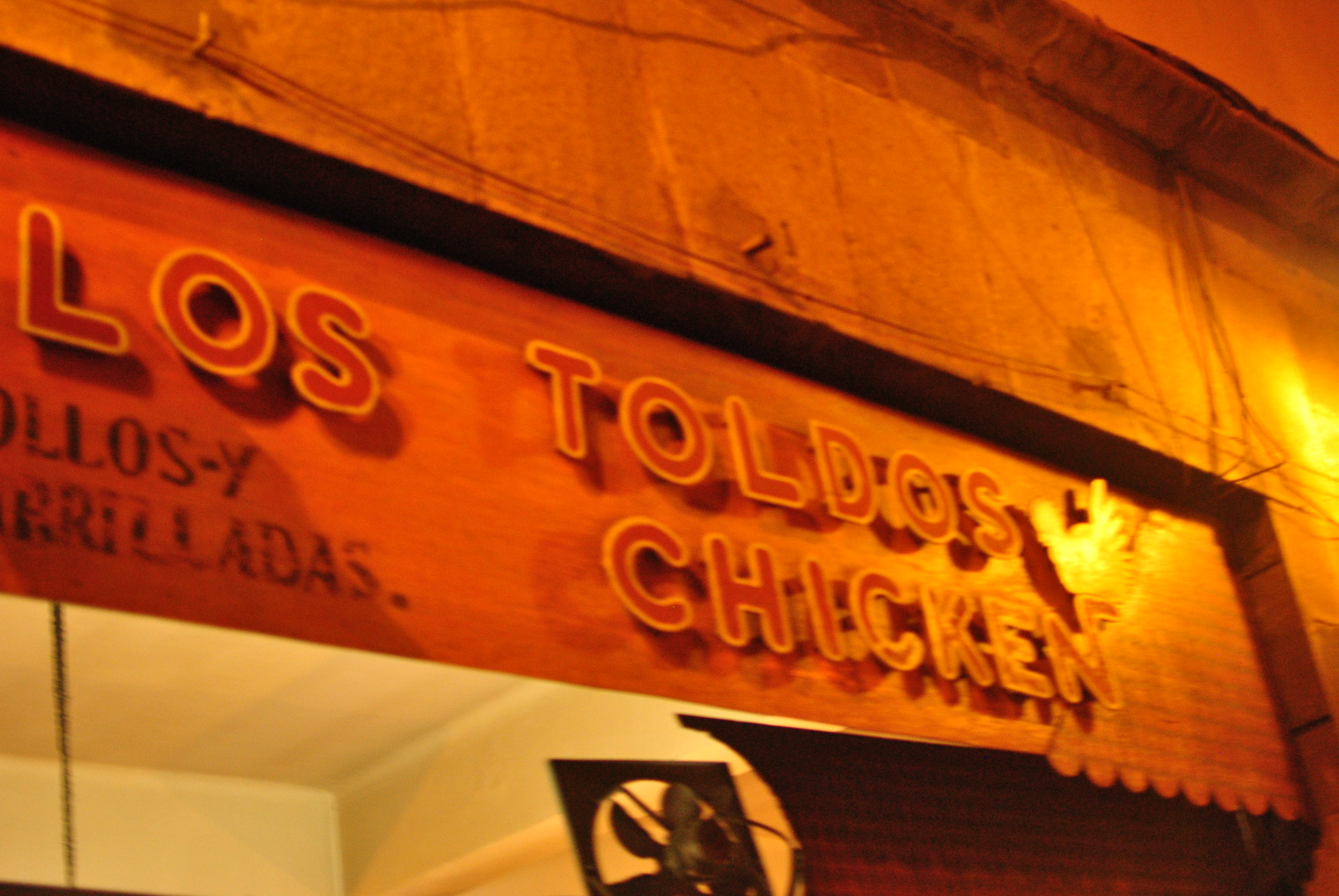 We told our tour guide in Cusco that we really wanted to try pollo a la brasa, or Peruvian style chicken, but every time we asked someone they would send us to a fancy place that didn’t actually serve it. Our guide gave us two recommendations so we went to both places to check them out. We eventually chose the one that looked to be the most crowded, but both were actually pretty busy, and all the food we saw going by looked mighty tasty. What drew us to Los Toldos were the rotisseries right out front with lots of chickens going round and round, dripping glorious juices and fat everywhere.