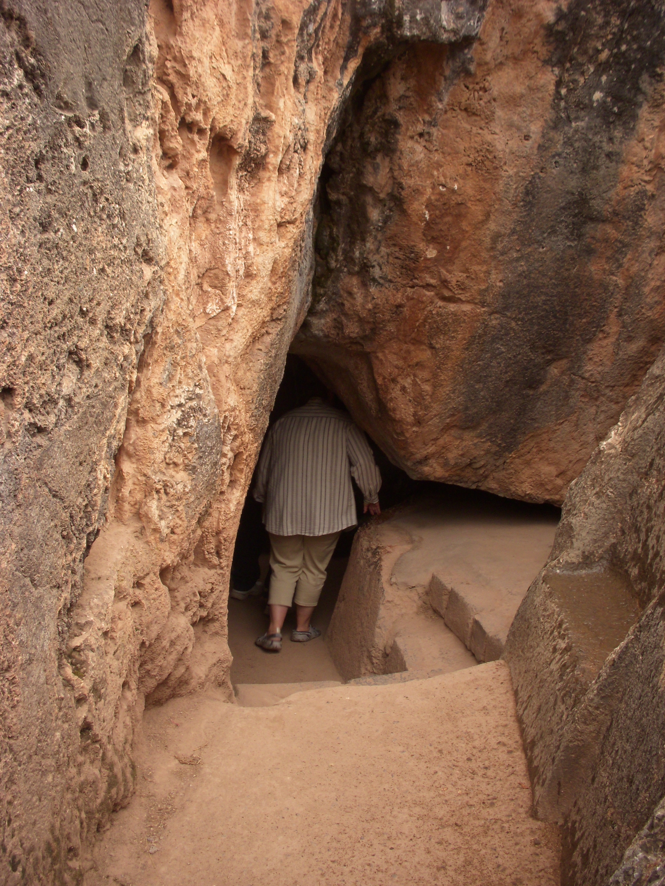 After leaving the zig zag stone walls, we went over to Kenko, an Inca religious site with underground caves and temples. Many rituals are believed to have been performed here. In one cave, there was a huge stone slab that was supposed to have been used as an altar during the mummification process. It was an interesting place, and I was only slightly creeped out.