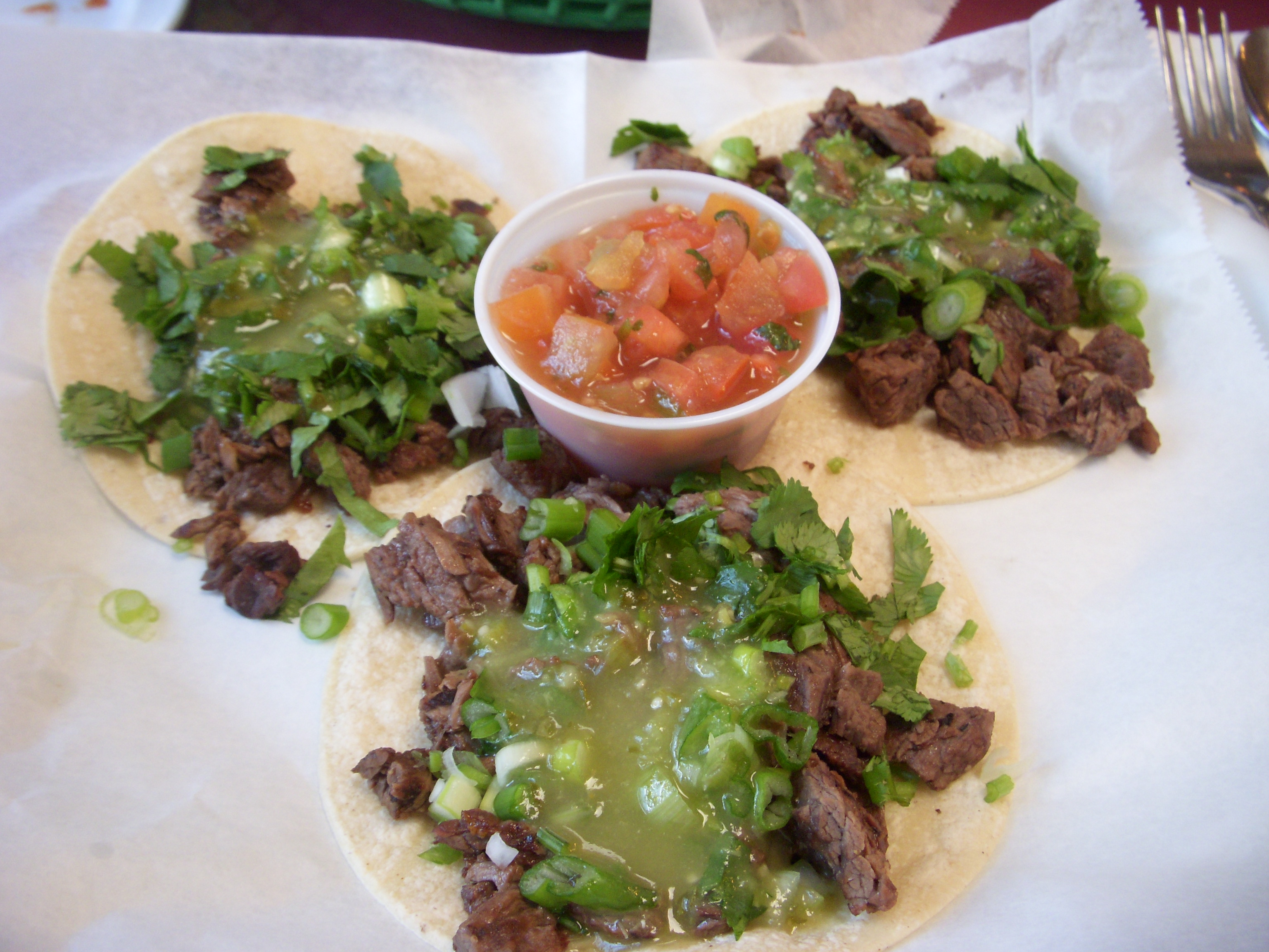 While the outside of the restaurant looks like an old time car hop, you actually order and get your food inside. J was asleep so Josh got our tacos and brought them right outside to the car where we quickly devoured them. We shared a puffy beef taco and a puffy chicken taco.
