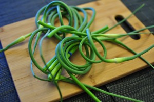 The squash will either go into a ratatouille or a pureed squash soup. Both are some of my favorite recipes, and I’m glad that we always get a lot of squash each week. As for the garlic scapes, we have quite a stock pile right now. I tweaked a garlic scape pesto recipe that I liked a lot better than my first attempt at scape pesto, so I’ll need to write a post about that.