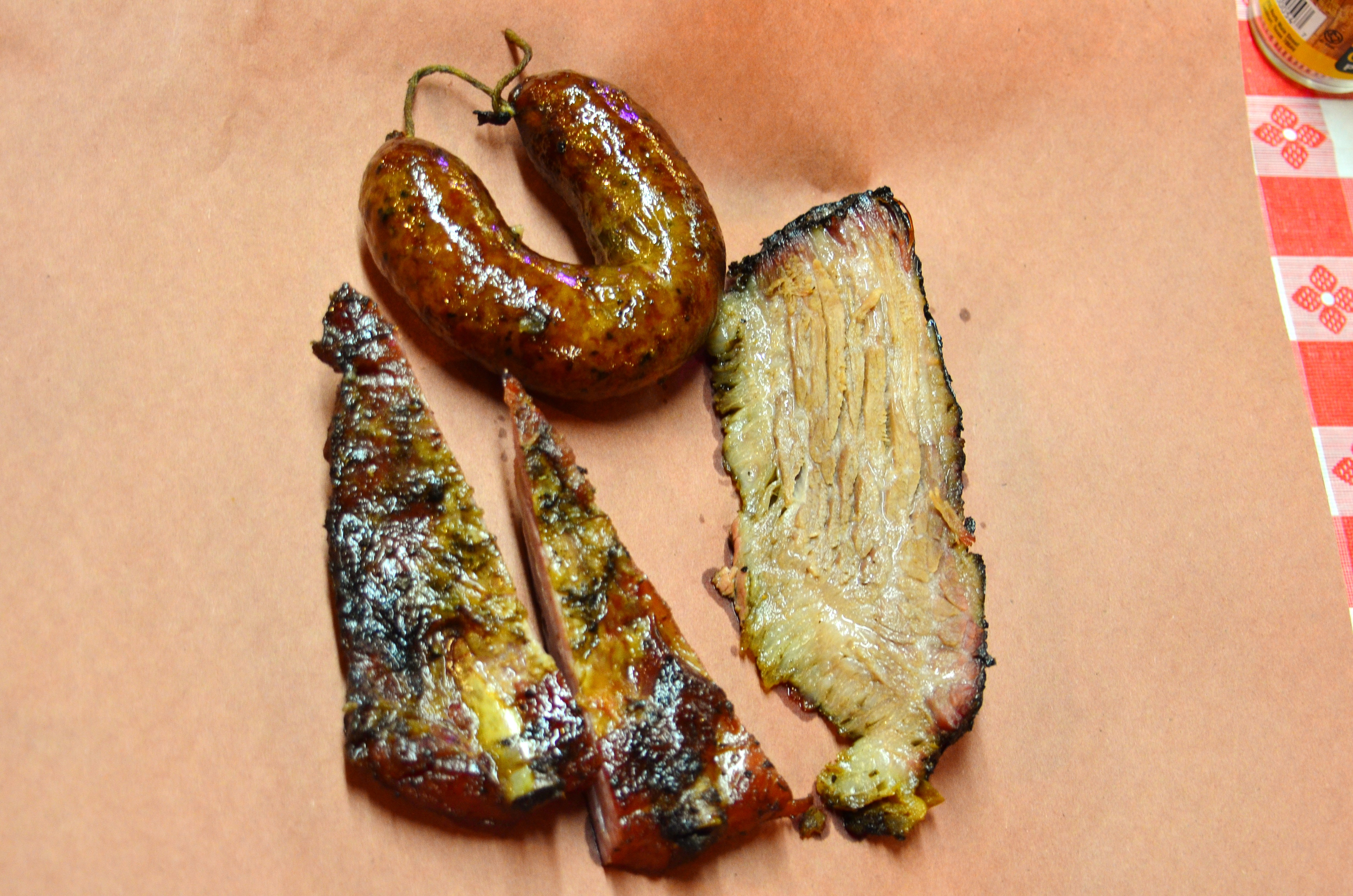 After enjoying the barbecue so much at City Market, we craved more. And so we made the split decision to continue on to Lockhart. We had nothing in particular planned for that evening in San Antonio, we were only 20 minutes away, and we were still hungry, so why not? We decided that we would order 1/4 pound each of the same meats – brisket, ribs, and sausage – at the three most popular barbecue places in the barbecue capital.