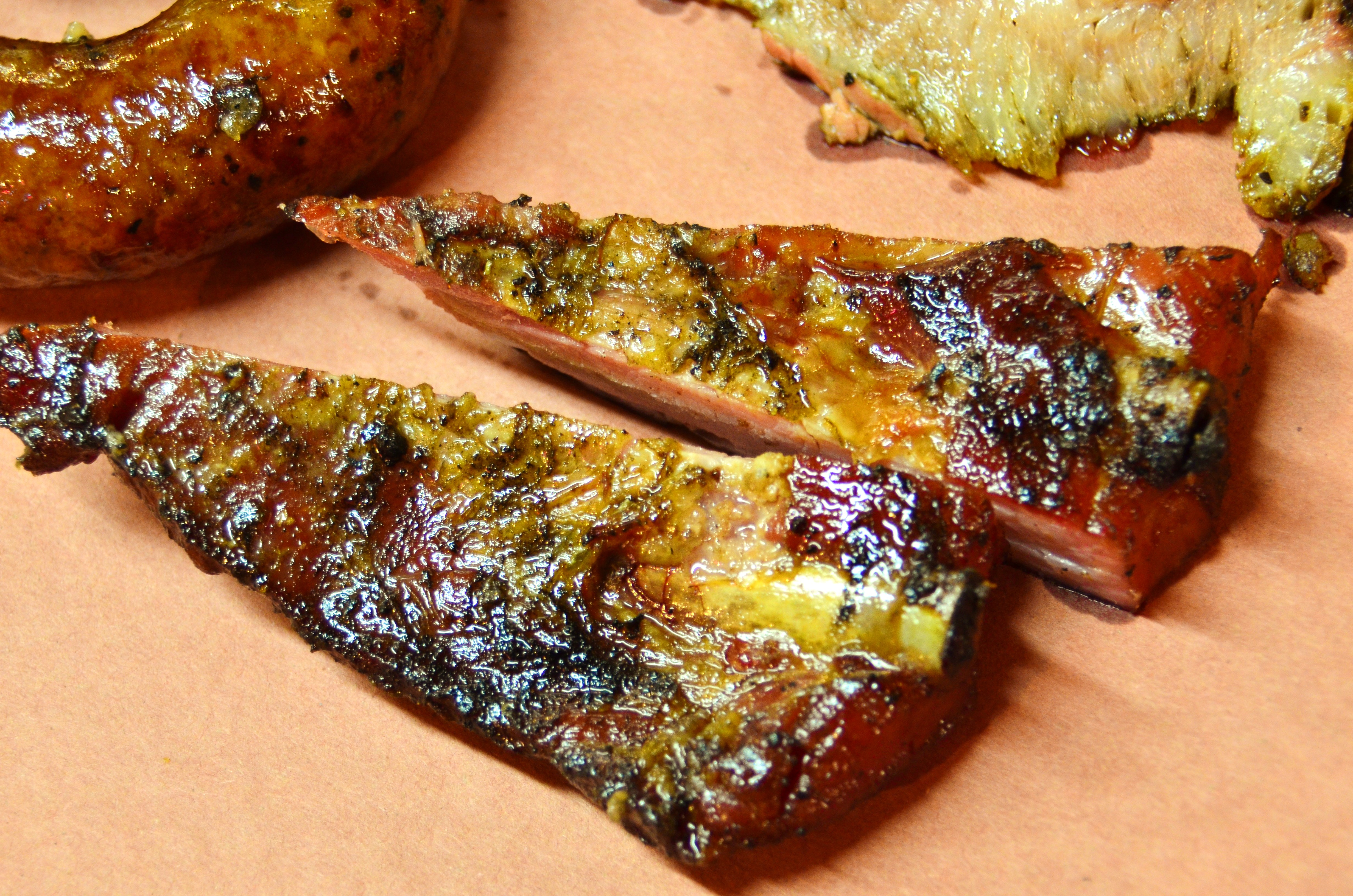 The ribs had a promising-looking dark crust on them, but they also fell flat. The meat was chewy and surprisingly tough. We wound up using a lot of barbecue sauce to help get them down.