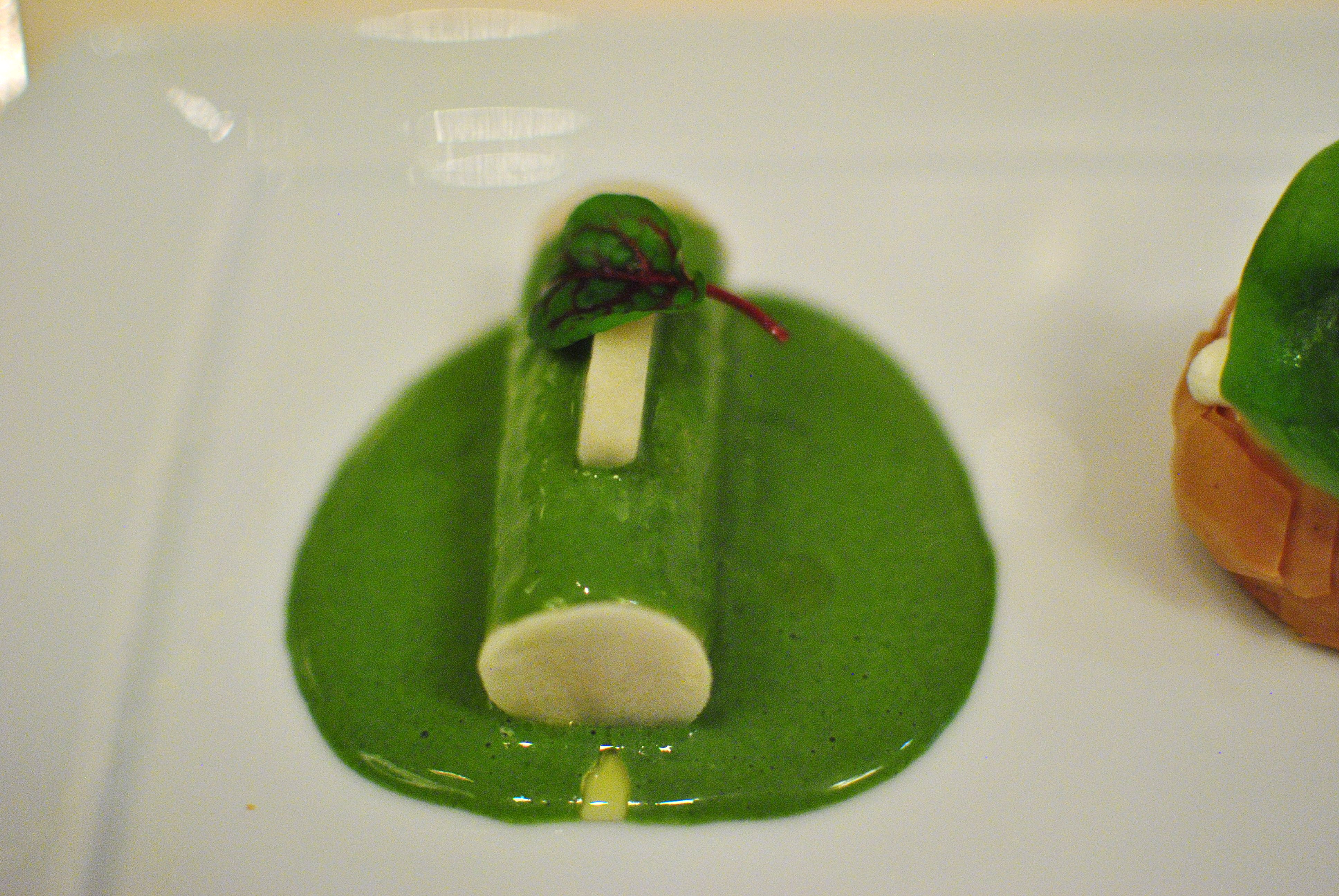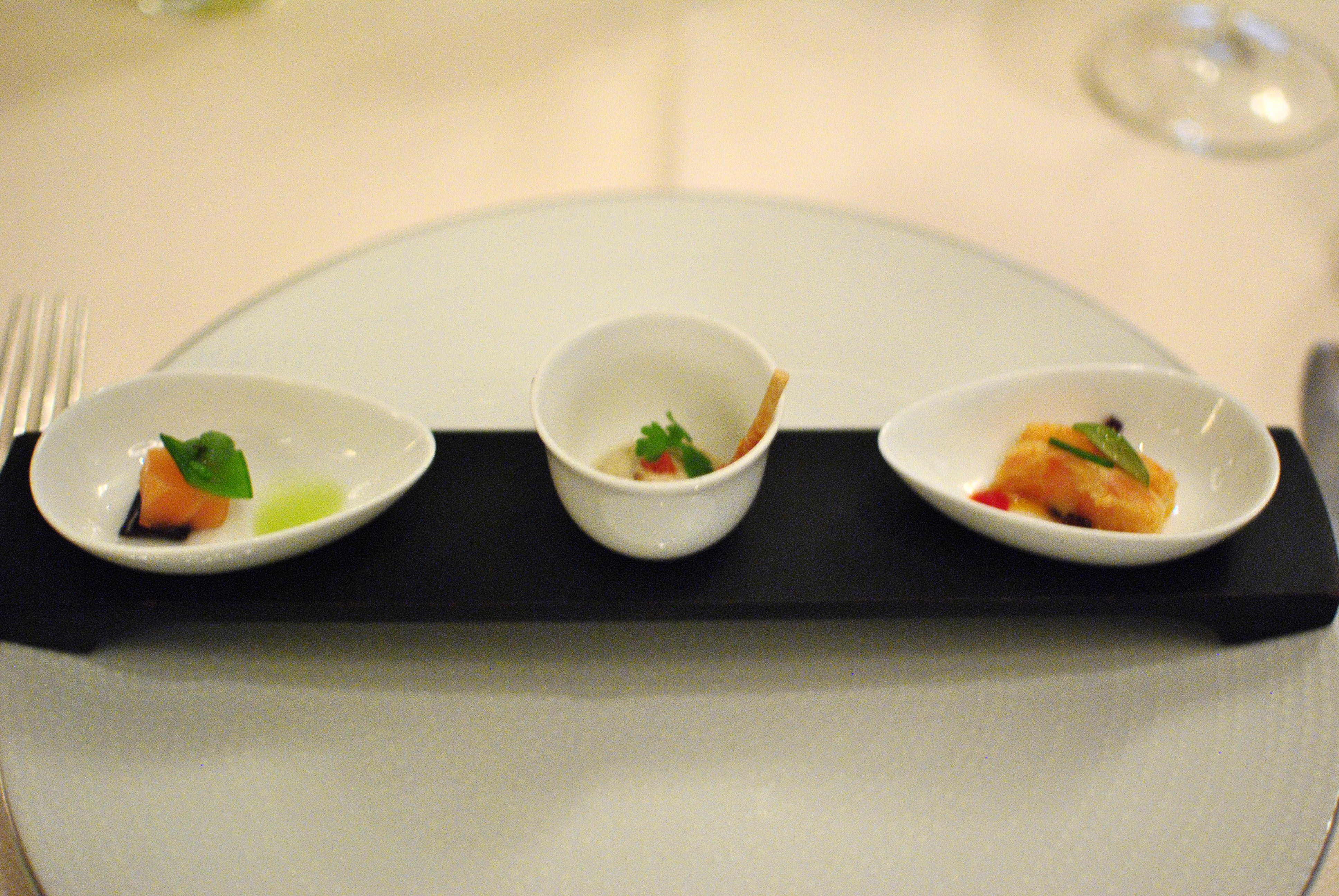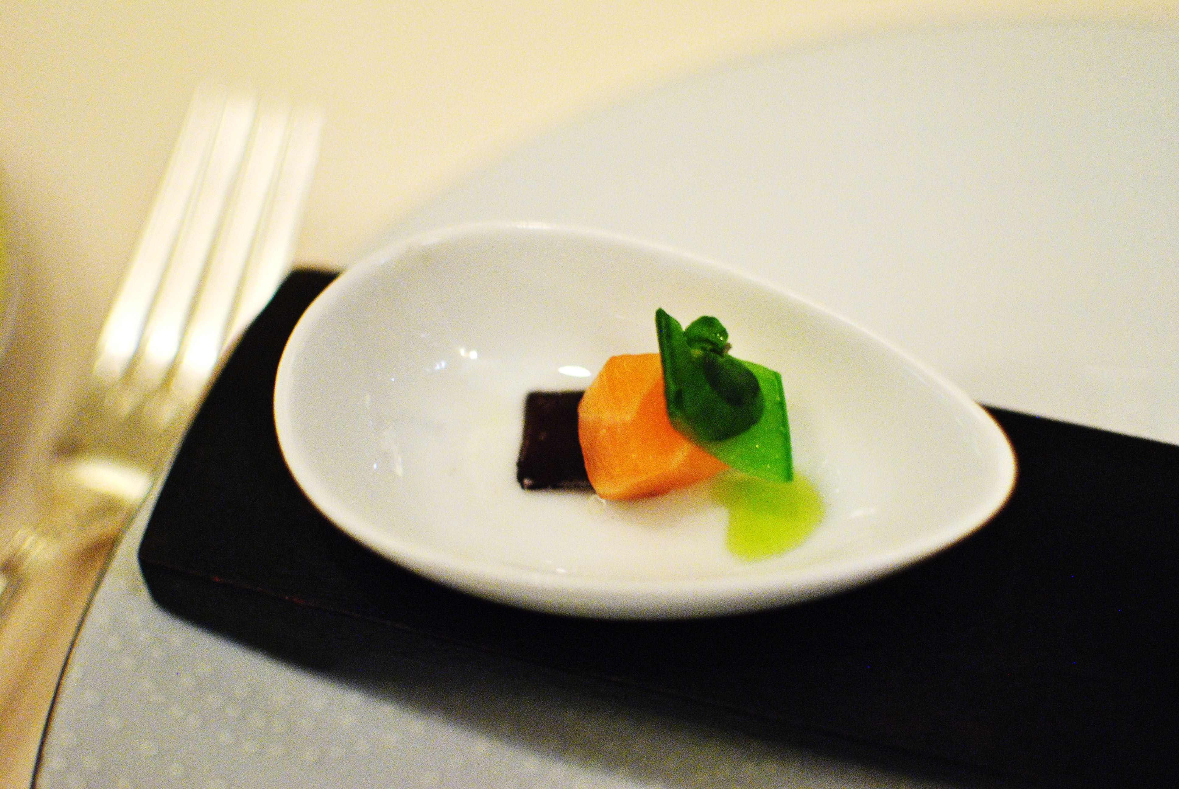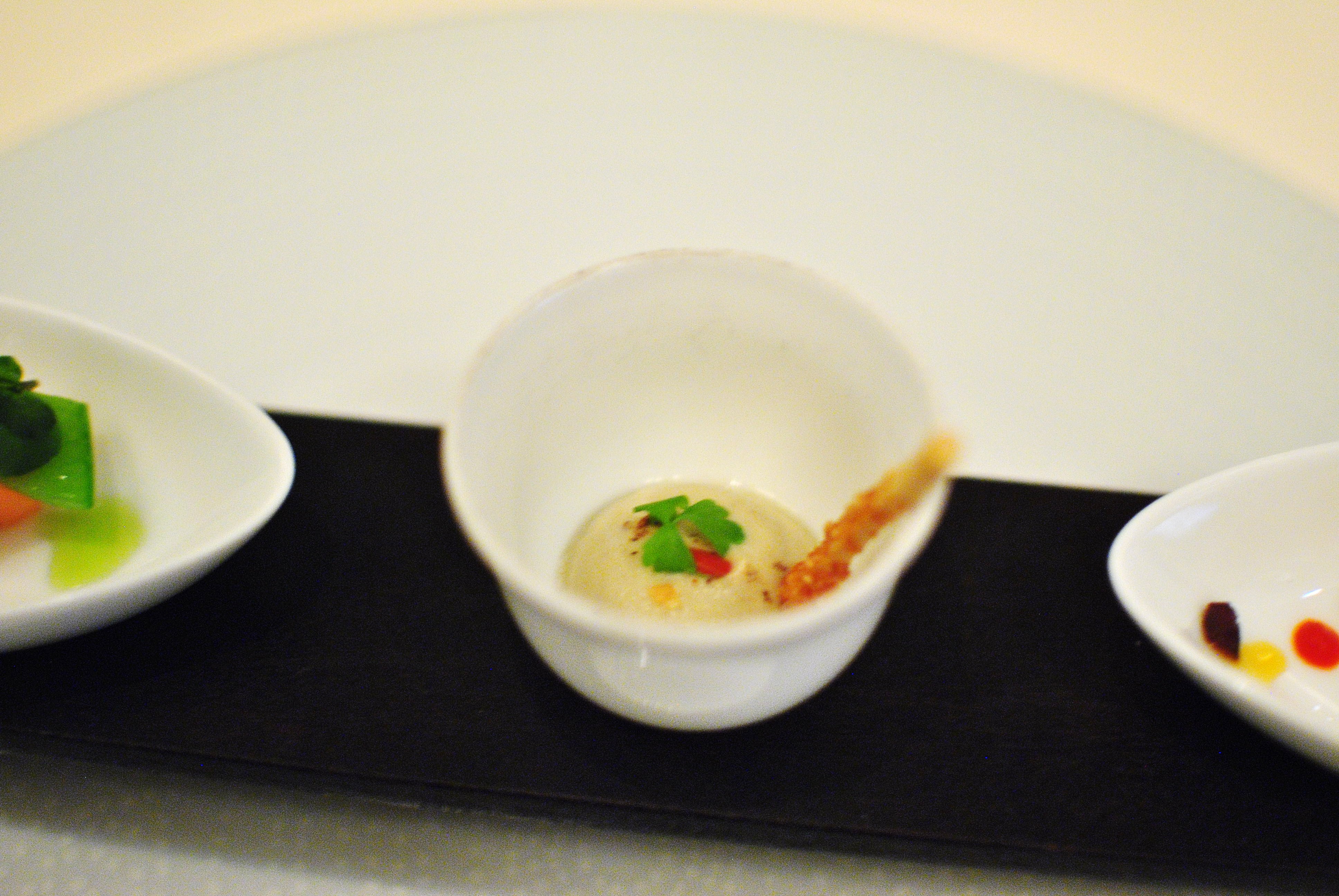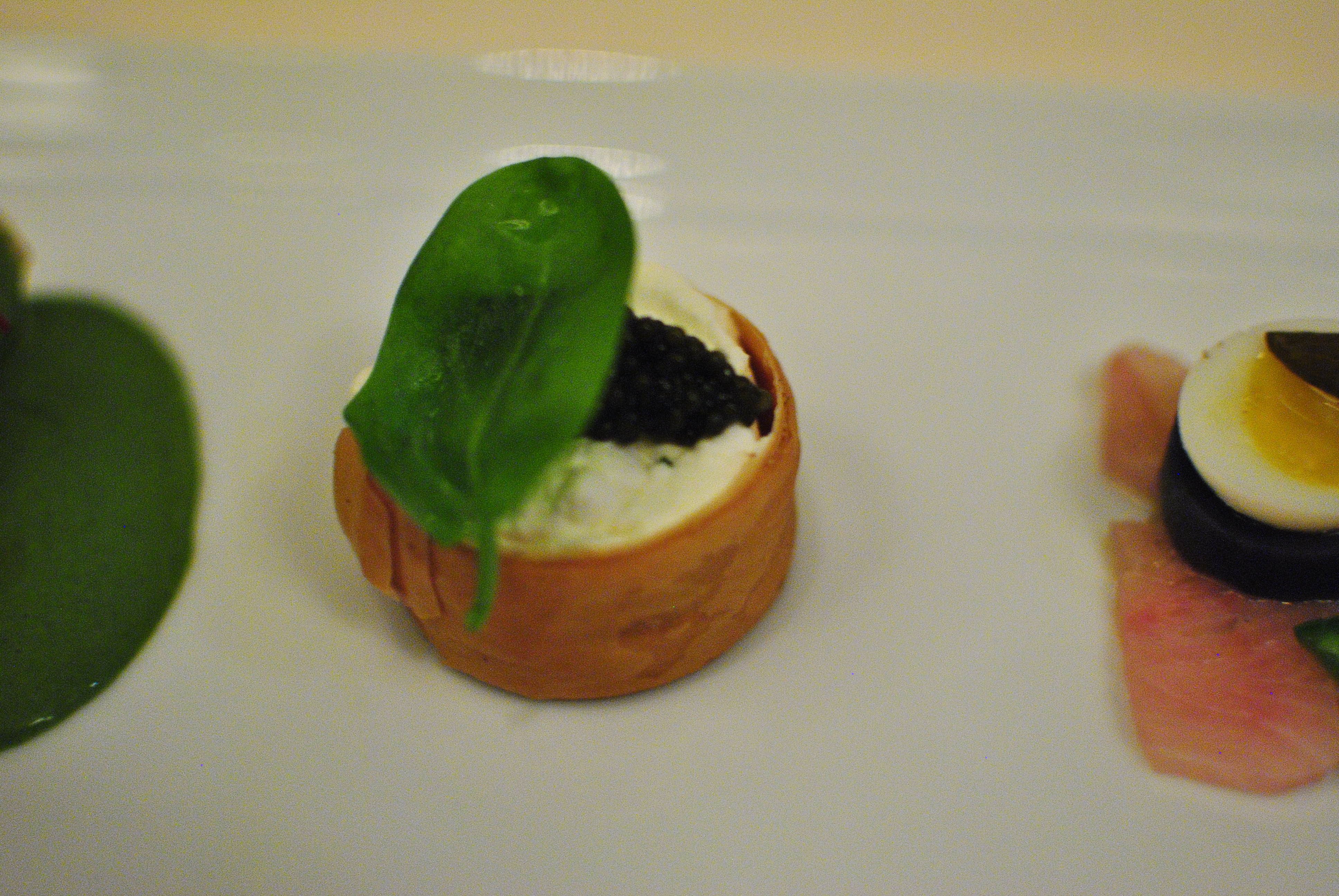 They included a shrimp with eggplant brunoise, an eggplant mousse, and smoked salmon on top of a piece of eggplant. I loved the smoked salmon, which tasted fresh and had a great texture, but the one that featured eggplant the best was the mousse, which was light and airy and showcased the subtle sweetness of the eggplant.