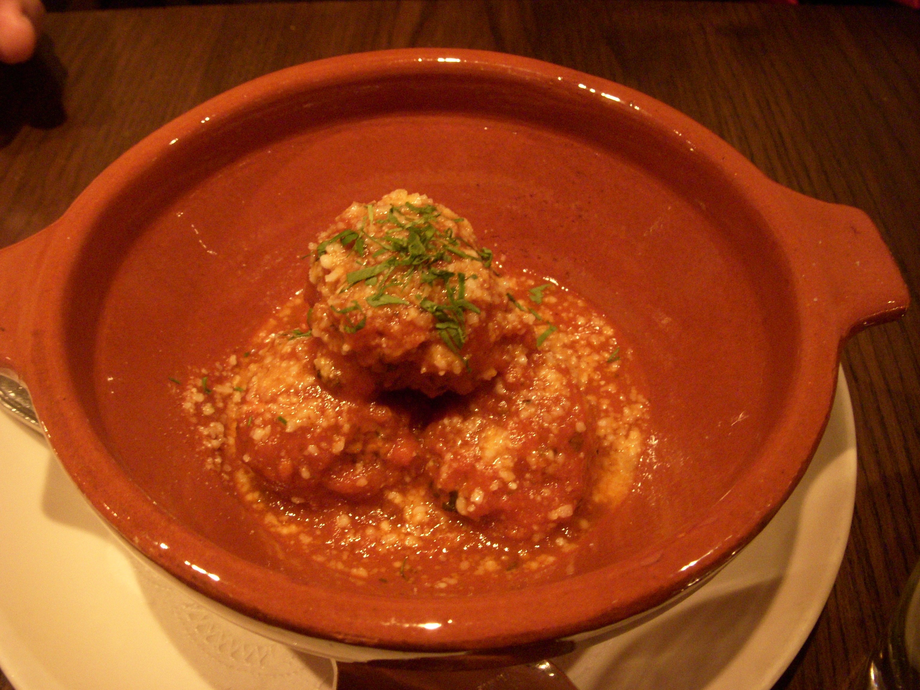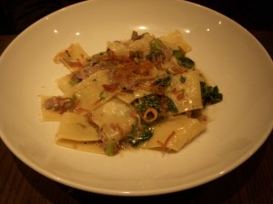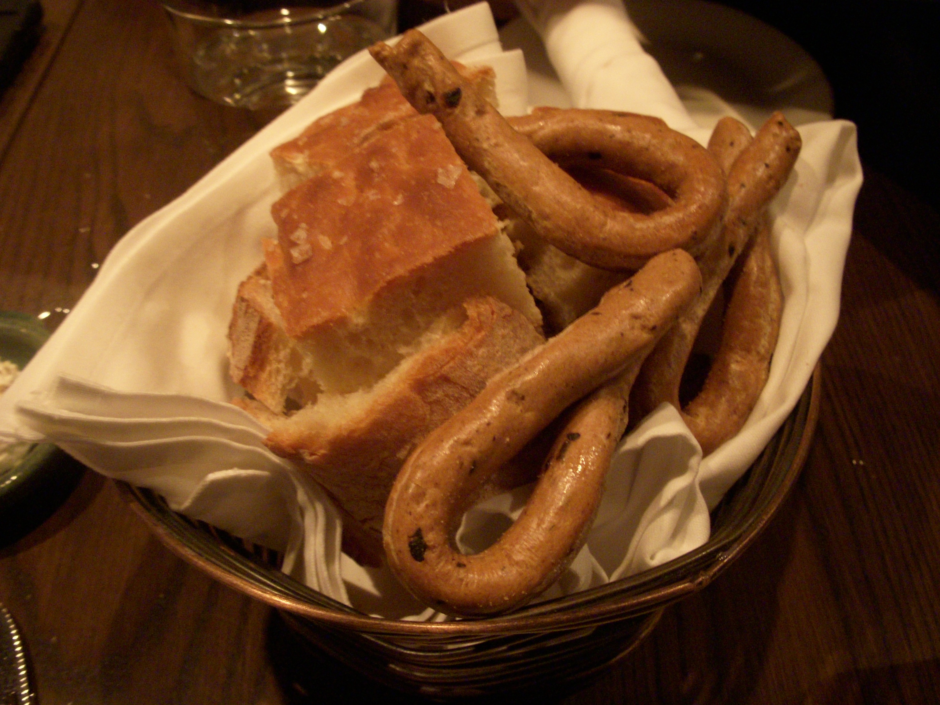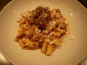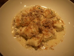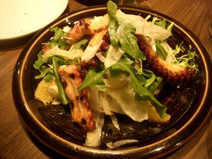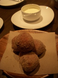 We decided to share a few appetizers to start. The first was edamame fritters, which our waiter said was a new dish for the restaurant. For some reason we were all expecting the individual edamame beans to be fried, and were quite surprised when we saw that it was actually like falafel balls made from pureed edamame. The fritters were fantastic – crispy on the outside and creamy on the inside. The edamame flavor definitely shined through, brightened up with some citrus. There was also garlic mayo on the side for dipping that was addictively delicious. I could have used that mayo on just about anything. My only complaint was that there were only two fritters in the order. I wish there had been more!