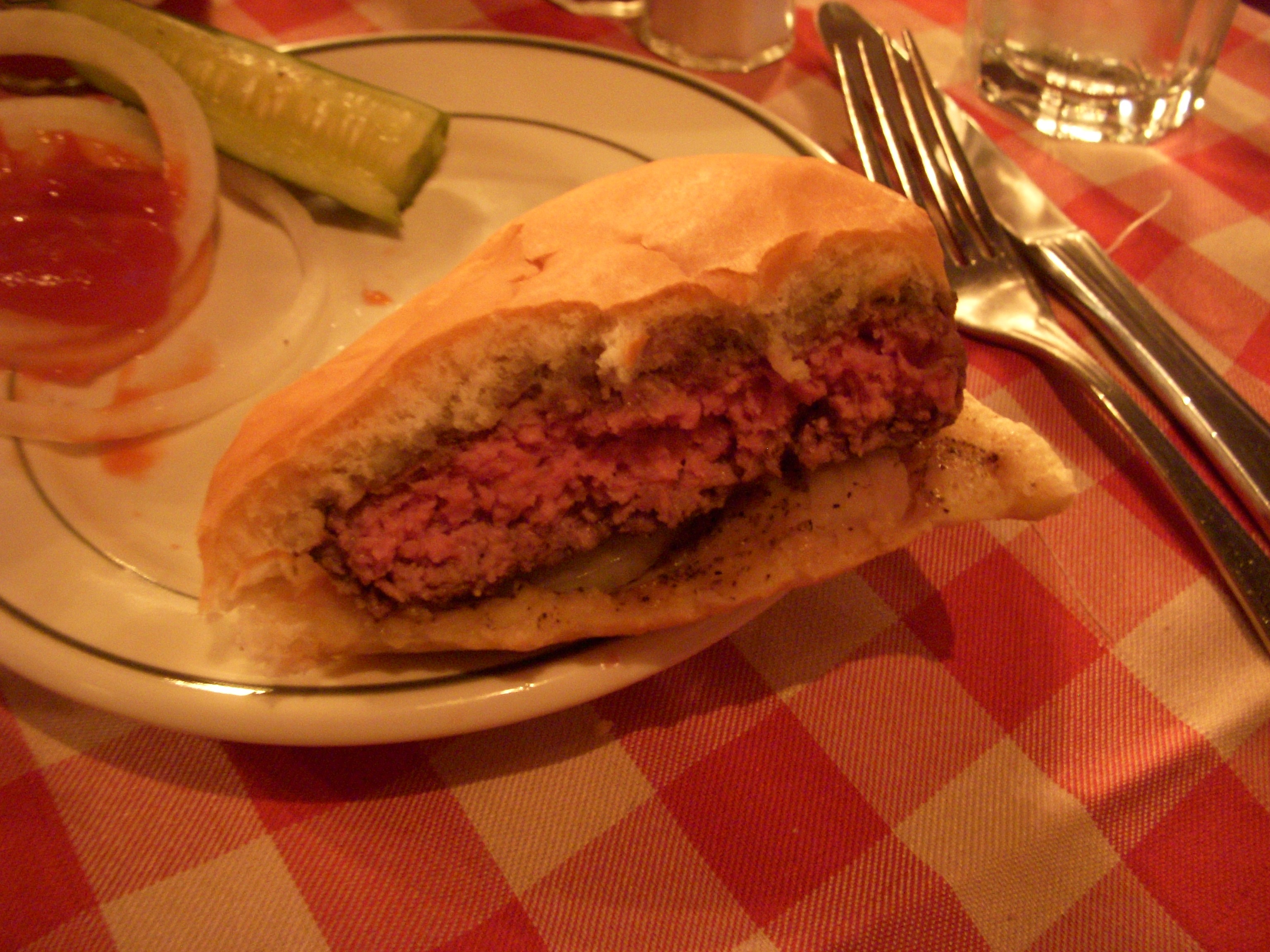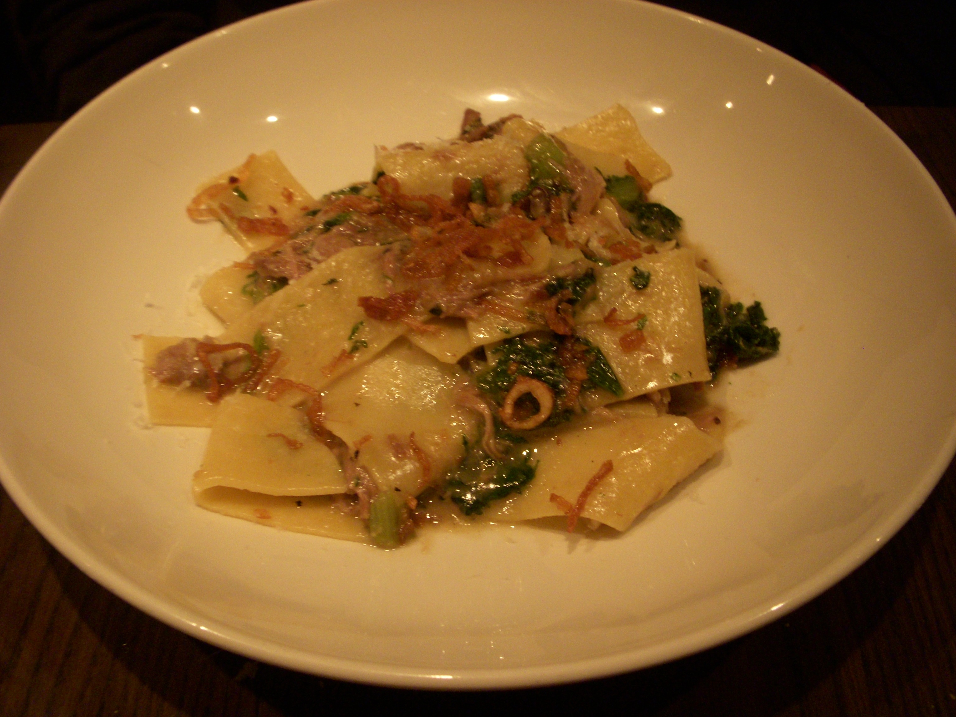 The burger itself was very flavorful, with the pickled vegetables and sriracha sauce definitely showing its Asian influence. The beef patty was cooked to a nice medium rare but it was kind of mushy in texture and got a bit lost under the egg and all the other components. What meat I could taste was well seasoned, and while I really did enjoy the burger, it didn’t seem like a regular burger to me. I wouldn’t compare it to a Shake Shack burger or Corner Bistro, because it’s a totally different genre of burger. So even though it was pretty delicious in it’s own way, if I’m craving a burger, this isn’t what I’d go for. Nevertheless, we were happy to have tried it.