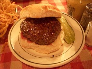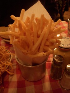 Both the burgers and the tacos were a la carte, so we got two orders of fries to share. They were thin cut and crispy, like McDonald’s fries, and dusted with a bit of paprika (I think). There was a mayo based dipping sauce on the side but the fries were good on their own and seasoned enough that they didn’t need the sauce.