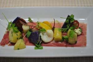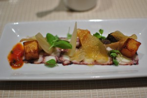 My favorite appetizer of the bunch was the thinly pounded yellowfin tuna layered on a toasted baguette that is spread with foie gras. There was olive oil drizzled over the top and a sprinkling of chopped chives. The tuna was fresh and flavorful on its own, and light enough that it was the perfect match for the foie gras. The foie gras was just a thin layer so the dish wasn’t overly rich, and the toasted baguette provided a wonderful crunchy textural contrast. It was just a winning combination overall.