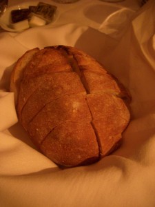 Bread was served first, a thick piece of rustic sourdough bread with a heavy, crispy crust. The crust was a tad bit on the well done side, but I still enjoyed it slathered with a thick layer of butter.