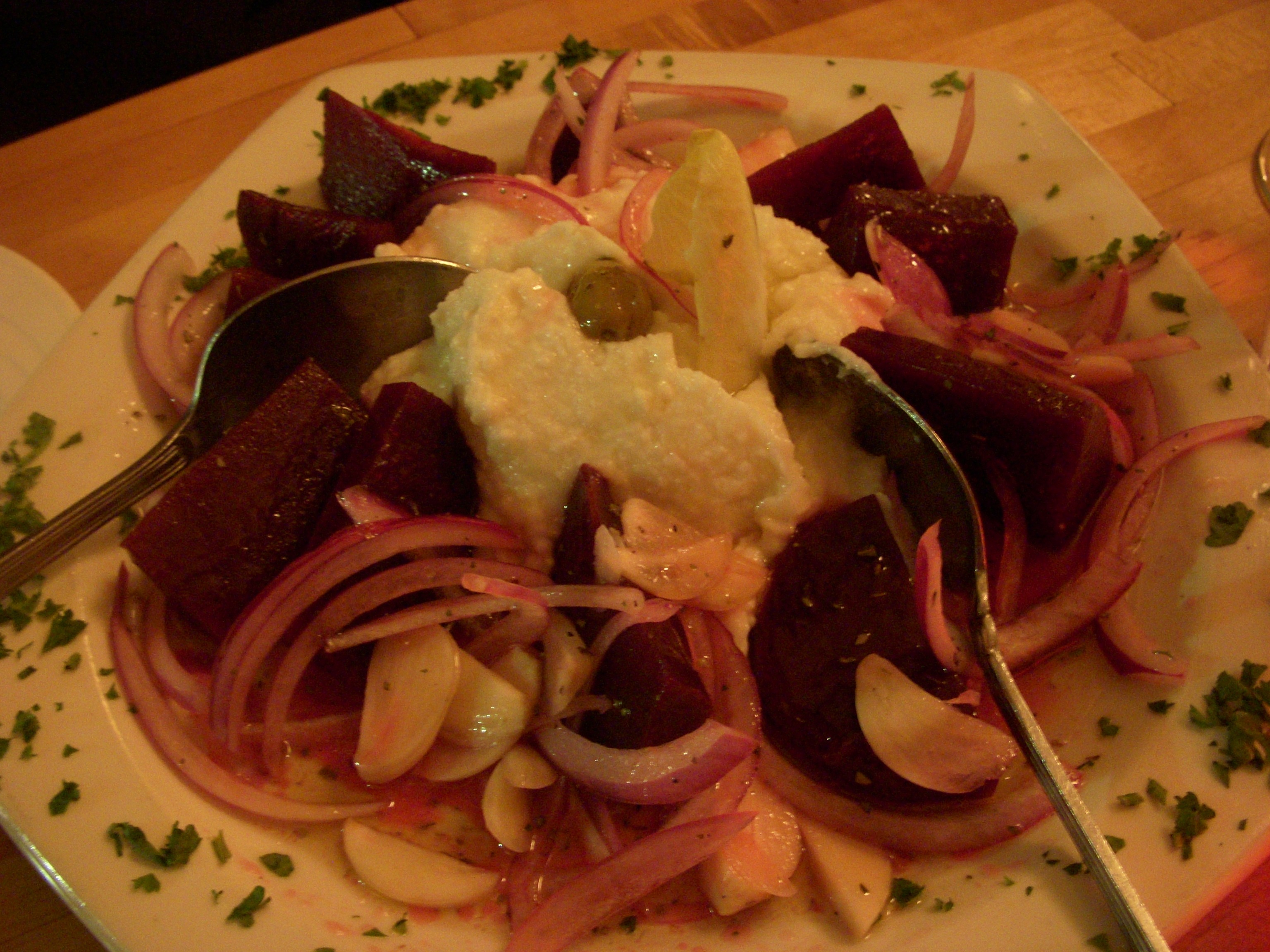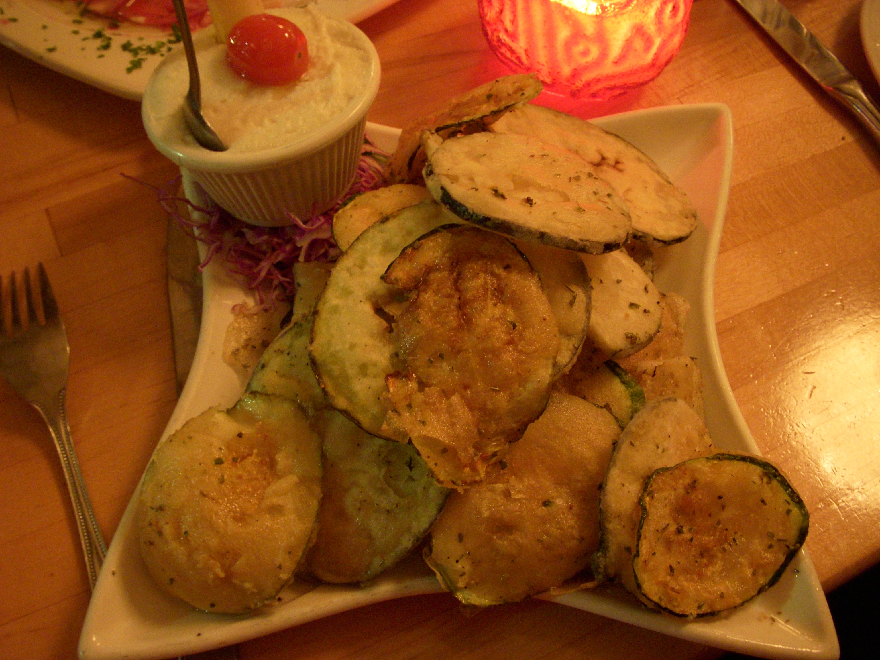 The restaurant is a BYO, which is another bonus. Since we were celebrating, I wanted more than just a soda or water. We brought along a bottle of carmenere for Josh, and a bottle of sparkling grape juice for me. I wasn’t sure how the restaurant would handle the grape juice, since BYO doesn’t usually include non-alcoholic beverages, but our waiter initially mistook it for champagne and poured us both a fluteful to toast. Once he realized what it was, he just laughed and kept topping off my flute during dinner while Josh stuck with the wine. He didn’t make an issue about the grape juice or make me feel embarrassed about having it, which I appreciated.
