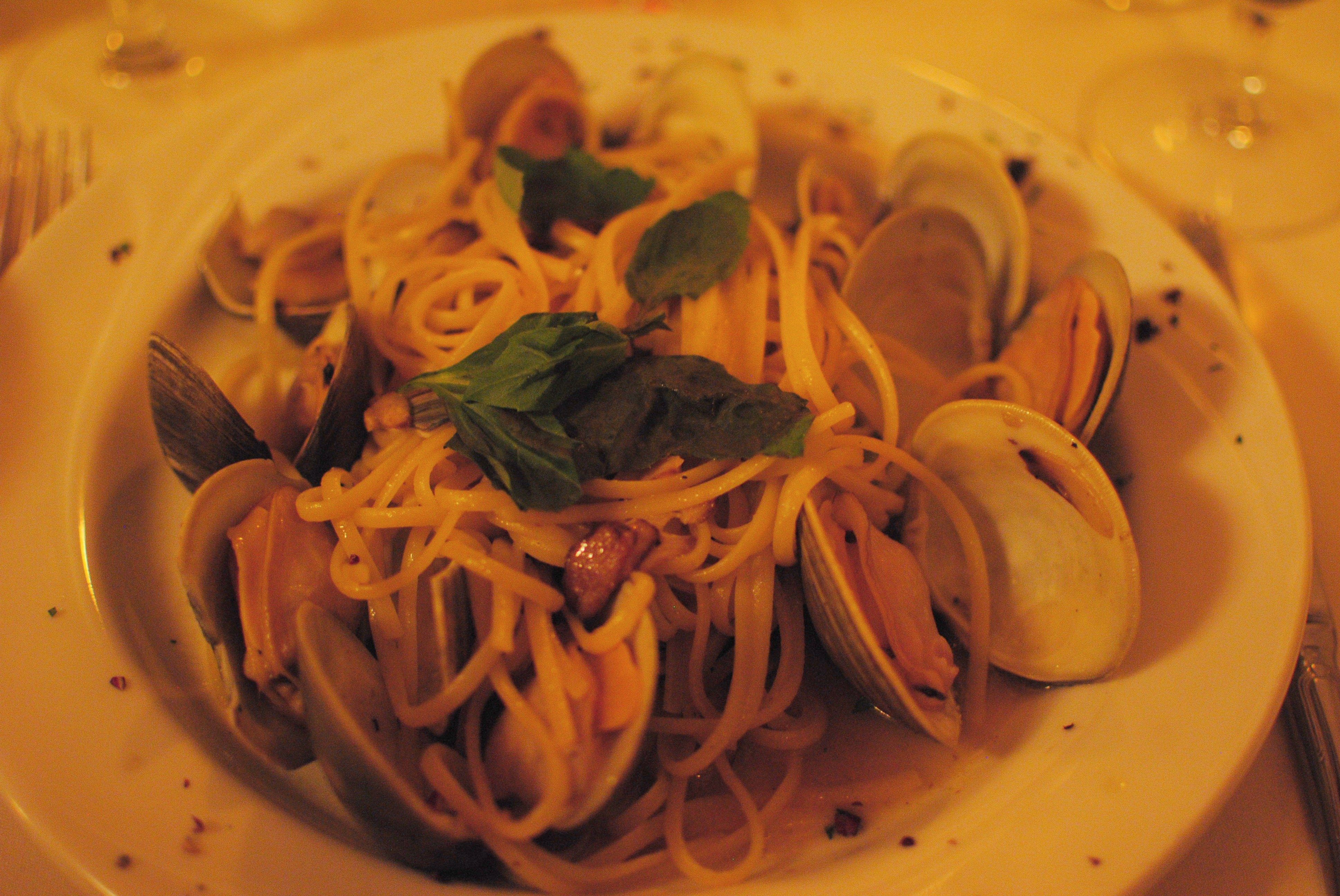 On the other hand, the duck was served with a black peppercorn sauce, which I thought would be really savory, but it was mixed with raisins, which added a sweet element. Even though we asked for it to be cooked medium, the duck was pretty rare, which I would normally like, but given my pregnancy restrictions, I only nibbled on the more cooked end pieces and let Josh eat most of the dish.
