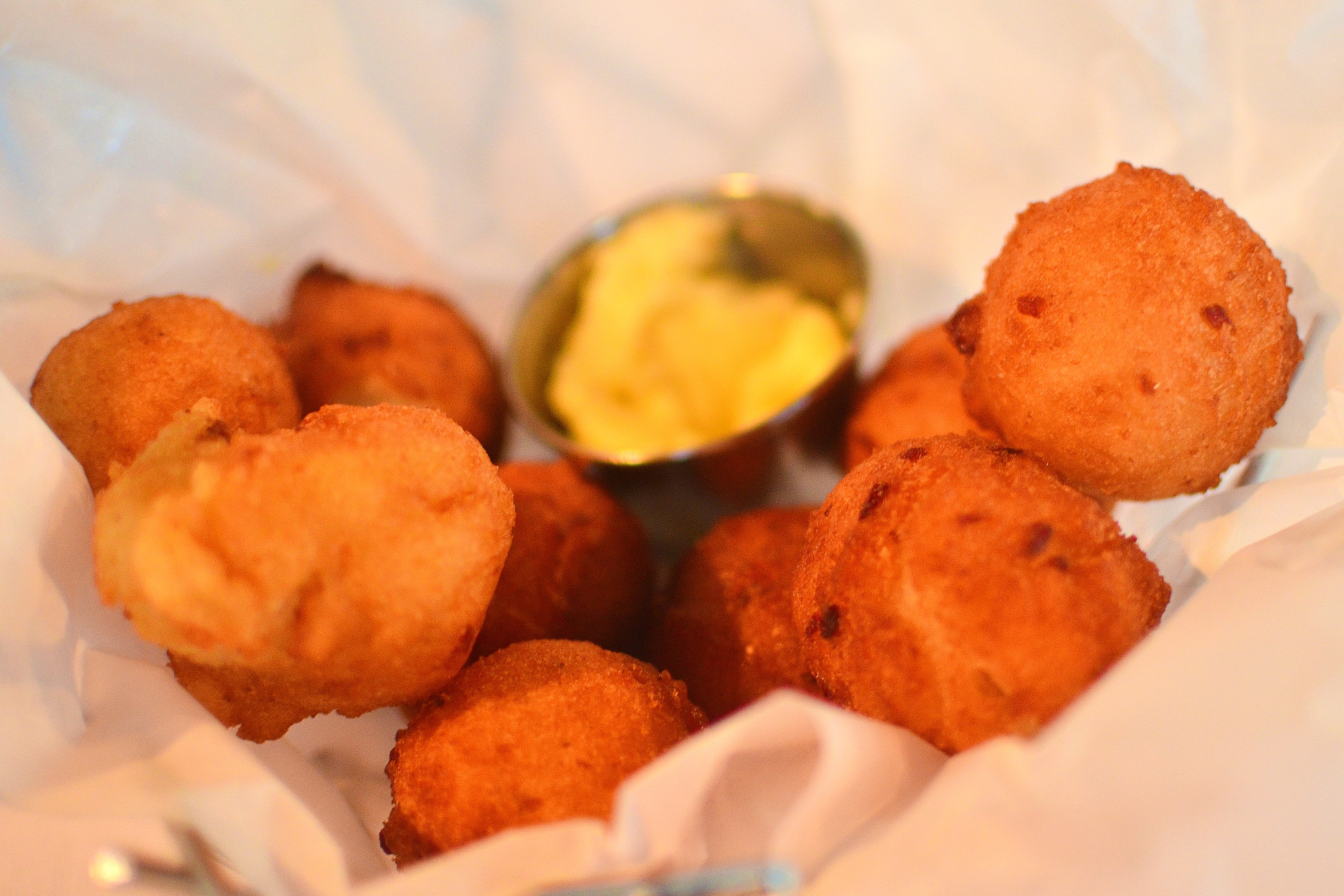 Boathouse Sampler – coconut shrimp, deviled crab balls, calamari, and hush puppies
