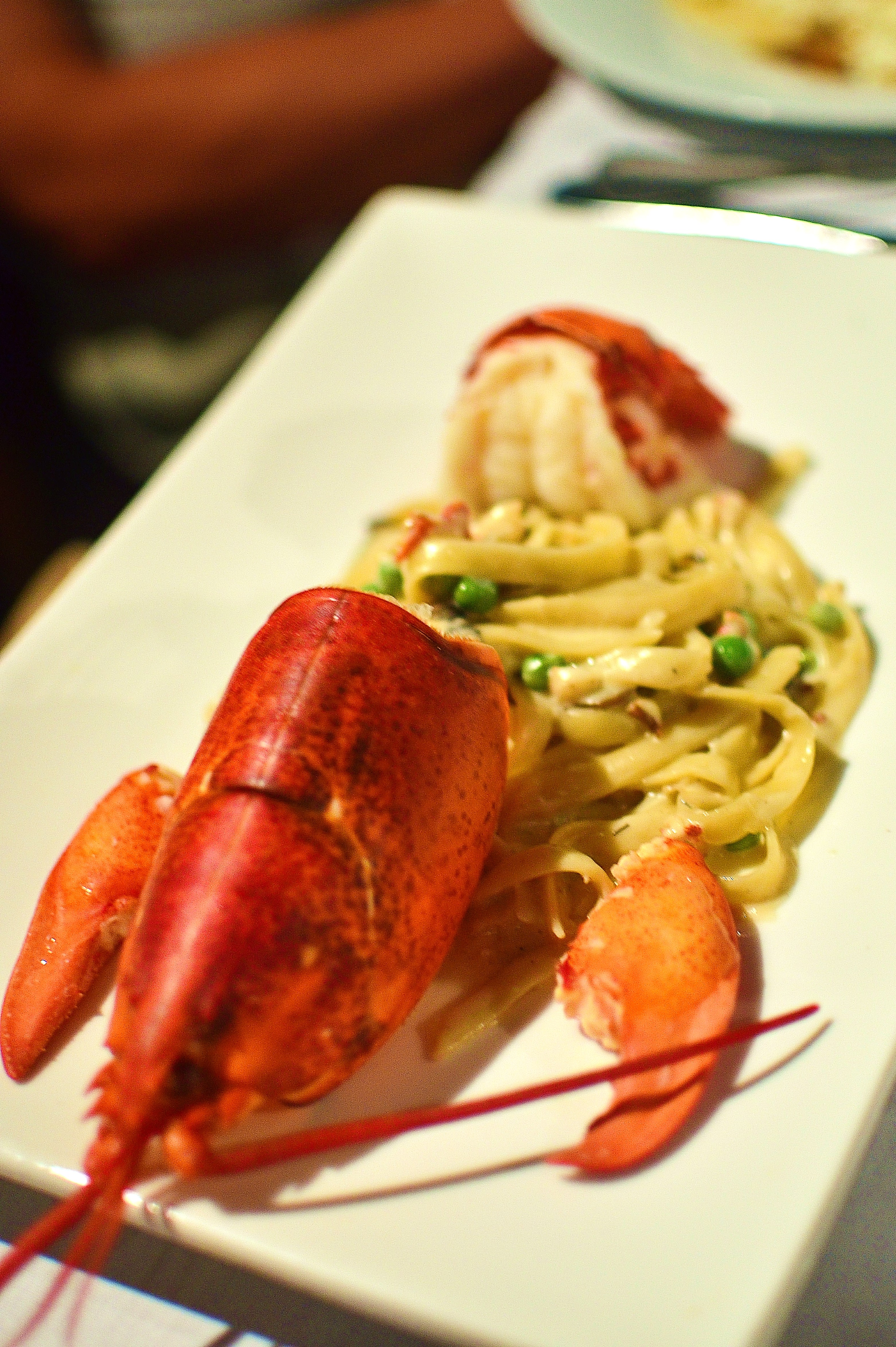 My mom, who loves lobster and bacon, had to order the lobster carbonara. The menu I think was a bit misleading, as it described the dish as “1 1/2 lb steamed lobster over creamy fettuccine”, and she definitely did not receive a whole 1 1/2 pound lobster. The head was there, which is her favorite part, but it was for show only – the innards were completely removed. The claws were there, already out of the shell, but the rest of the legs and body were missing, including the coveted knuckle meat. At least the tail was there, cleaned up and ready to eat. I guess at a nice restaurant such as ELA’s, people aren’t really expecting to break out a lobster bib and crack their way through an entire lobster, but the amount of meat seemed a bit paltry to me when you’re advertising the weight of the lobster on the menu. And I get that a lot of people don’t like lobster roe or tomalley, but keeping some of that in the dish would have helped it tremendously, taste-wise, as the carbonara itself was devoid of any flavor. I don’t know how they managed to snuff out the bacon in the dish, but they did. The sauce on the noodles was pasty, unseasoned, and just plain terrible.