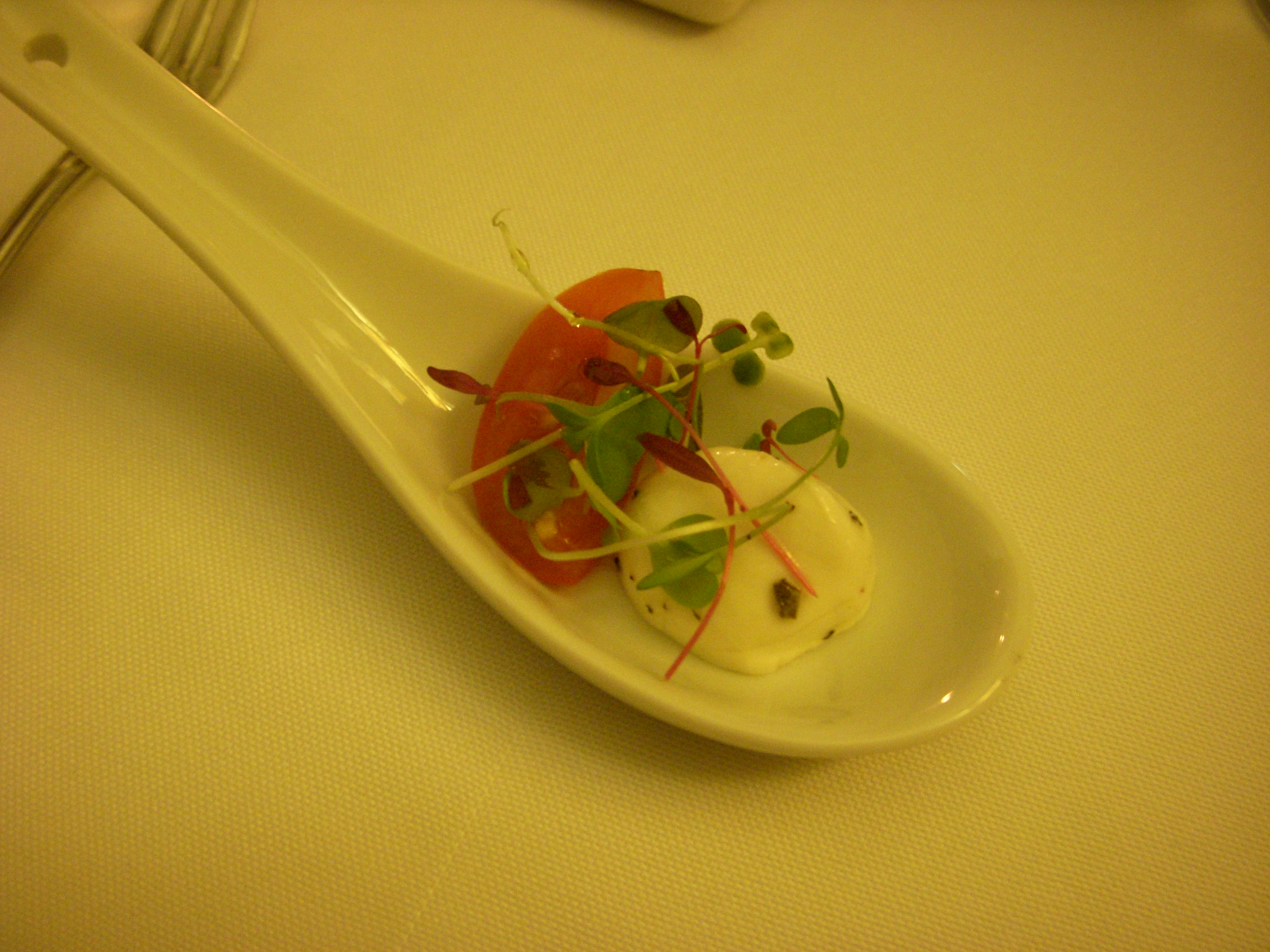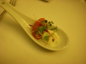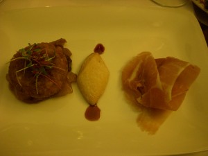 The second, a strawberry soup with a balsamic reduction drizzled on top, tasted like a smoothie. It was really good but more like dessert than an appetizer. I think it needed a bit more balsamic vinegar to make it more savory. I still enjoyed it though.