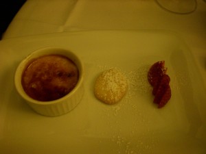 For dessert I had a chocolate “napoleon” that was kind of weird. It had chocolate cake at the bottom, and a ring of chocolate on top, but I have no idea what was in between. Maybe some sort of hazelnut cream? No clue. It was pretty though.
