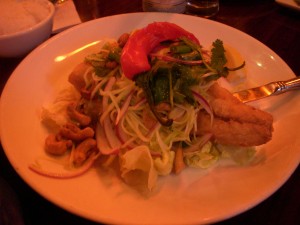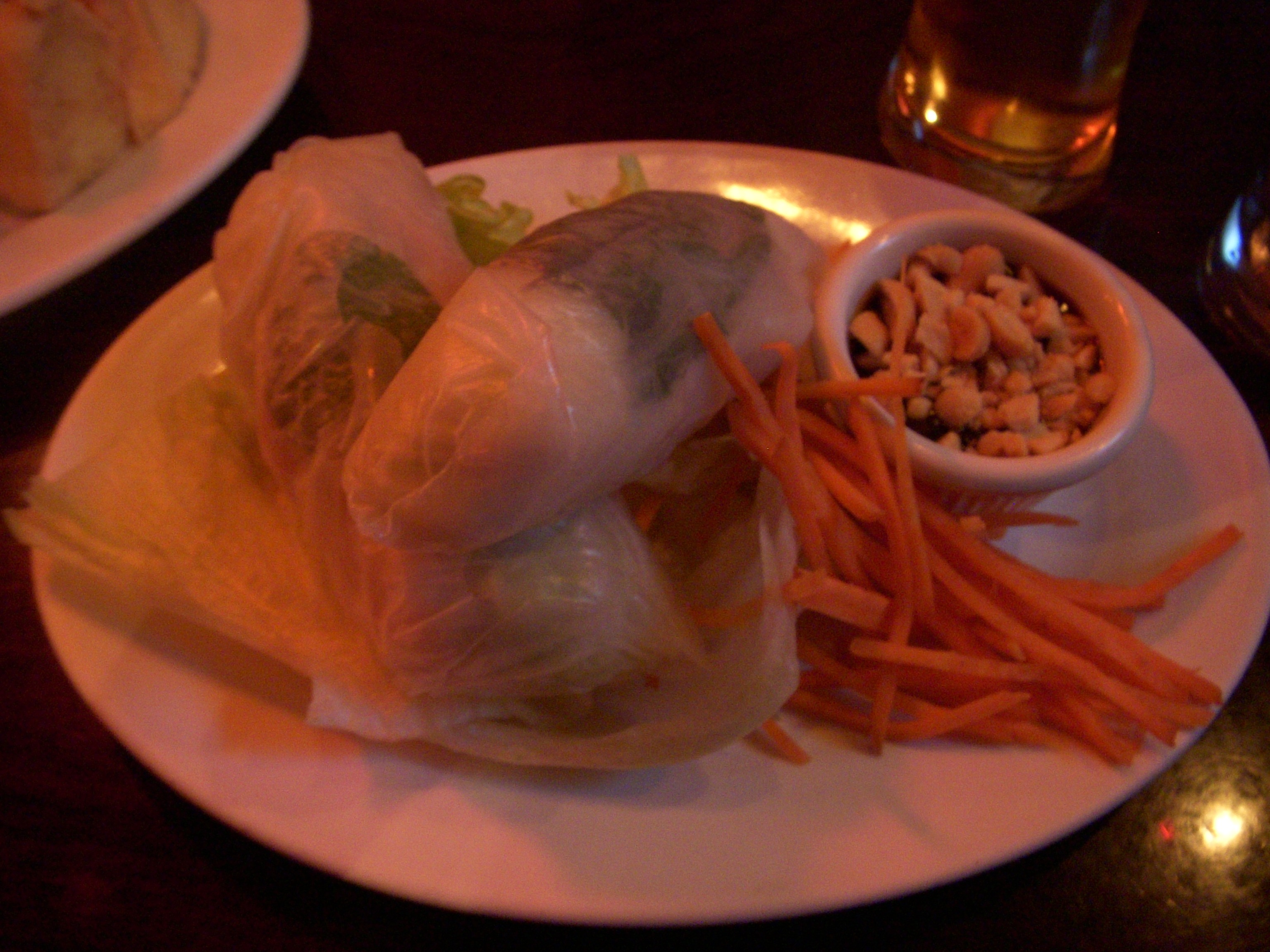 A bit perplexed and still a bit annoyed by the whole situation, we settled down and tried to salvage the rest of our evening. Everyone wanted to order their own entrees but we decided to share a few appetizers. First up were the Thai spring rolls, which are deep fried and filled with shredded vegetables. These are simple and standard but always tasty. Everyone was so hungry that they grabbed at the rolls before I could take a picture.