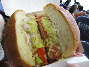 Overall, I have to say, Franklin Barbecue definitely lived up to the hype. We haven’t tasted better barbecue anywhere else, and for us, it was worth the wait. The line itself is an adventure – if you come prepared for it, time passes quickly. The people we met in line treated the wait like a party. They planned their whole day around this. For them, it was a time to drink, laugh, and hang out with friends before eating amazing food. And the barbecue is absolutely amazing. The flavors of the meat, the textures, were all outstanding. Aside from the turkey (which Josh loved), I thought nothing was too smoky but everything had a wonderful savoriness to it that was imparted by the smoker. We ate until we were stuffed, and then continued eating because it was just too good to stop. Besides, we had burned off plenty of calories standing in line for 4.5 hours. And you know what? We would do it again.