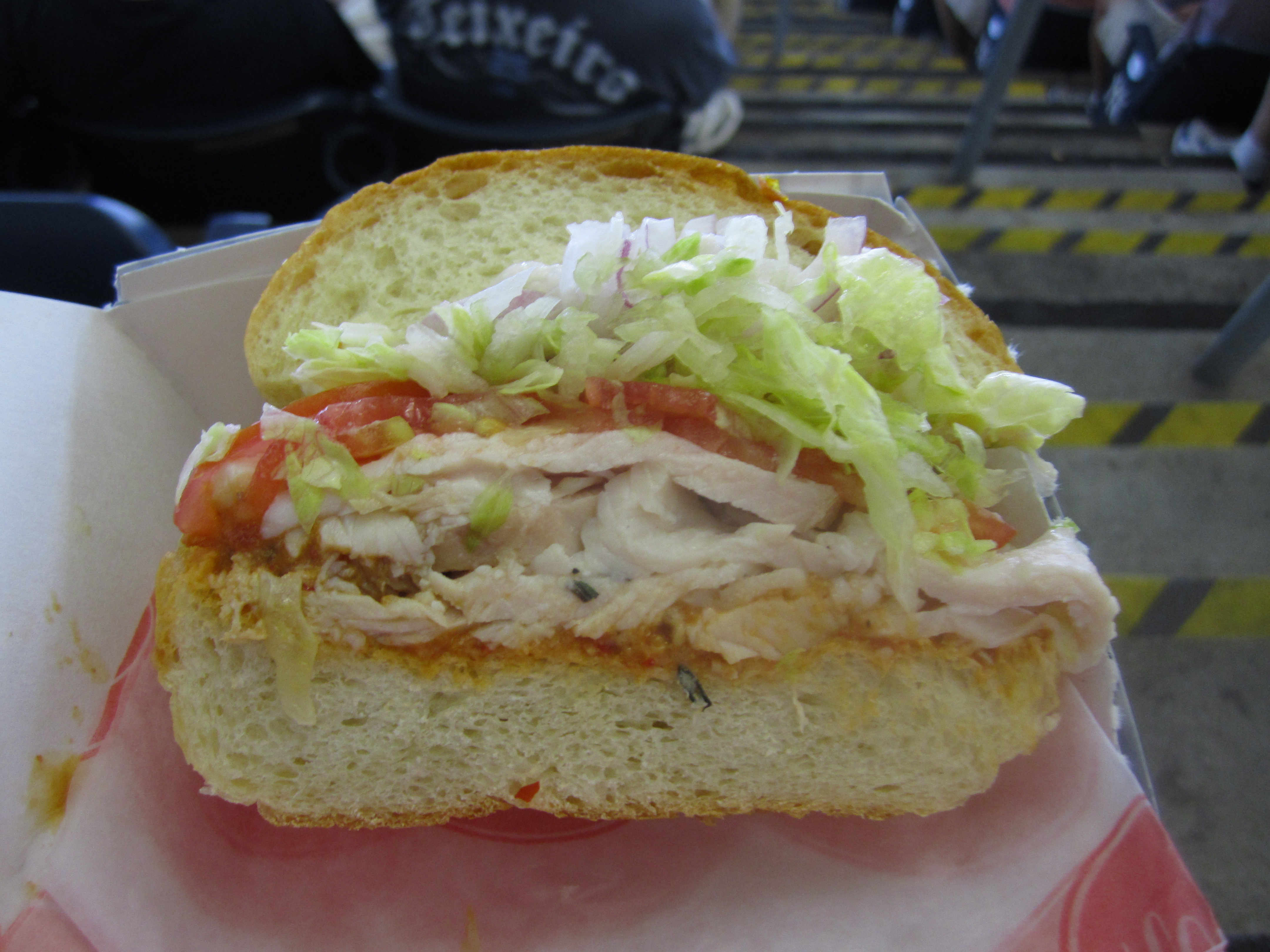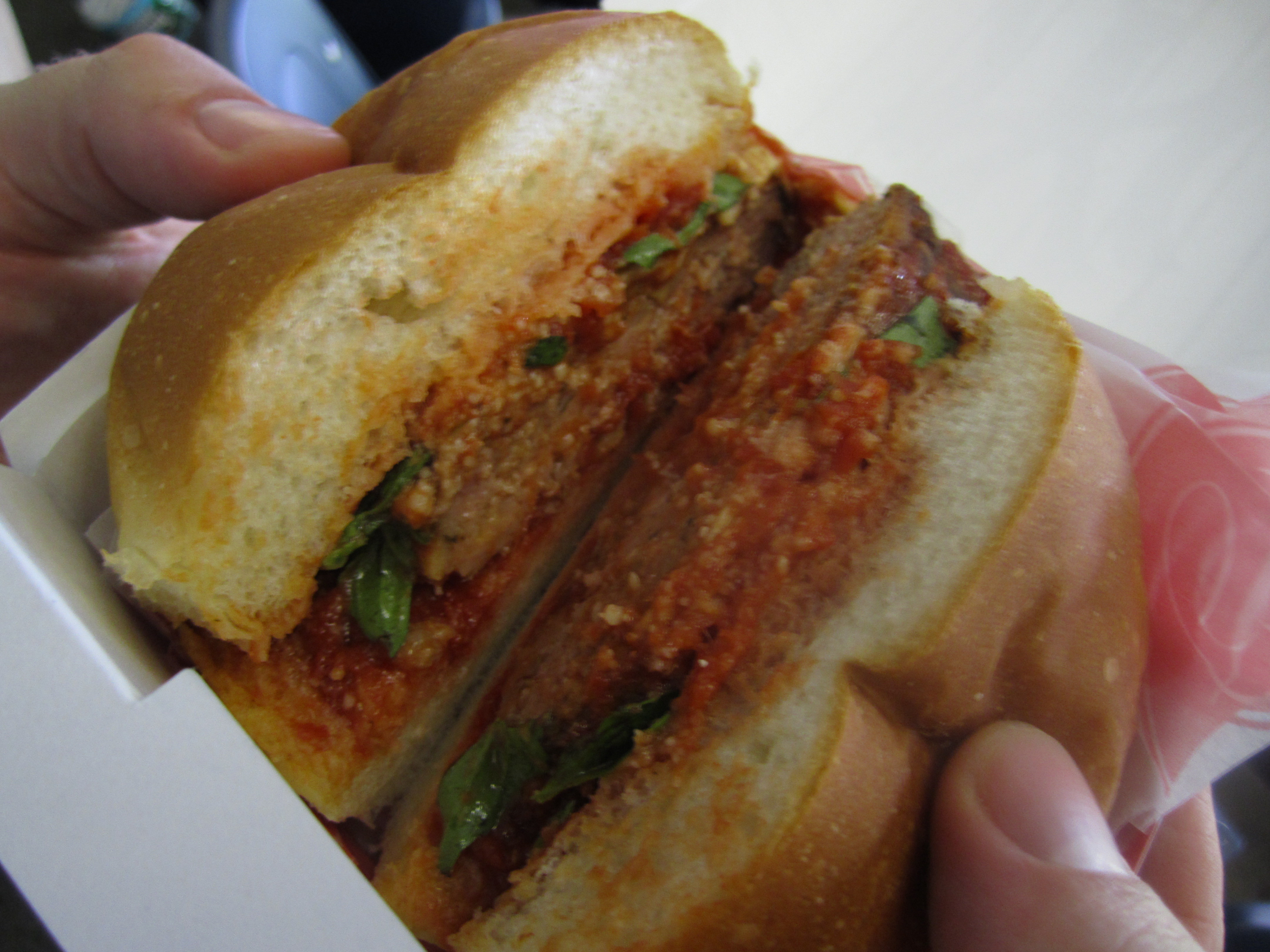 We also got a quarter pound of pulled pork, which wasn’t the pulverized mash that we’re used to seeing. This was roughly chopped meat, still in identifiable chunks, with a good mix of fatty and lean bits.