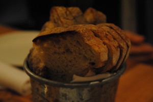 Josh was able to get us a reservation for Sunday night dinner so off we went. We arrived early for our reservation (surprising!) but they seated us right away, even though our party was incomplete. We had a table next to the window at the front of the restaurant, so we had a nice view of the “wine cave” tunnel that makes up most of the dining area.