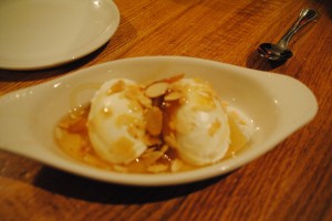 The apricot clafoutis was and almond cake topped with apricots and a layer of crumble on top. While I didn’t think almond cake and apricot worked well together at Morimoto, this dessert was really scrumptious and comforting. The cake part was a bit eggy, the apricots soft and sweet, and the crumble added a nice textural contrast.